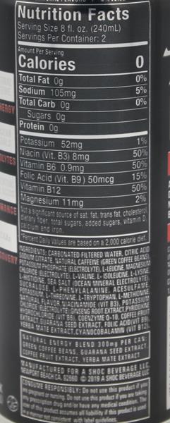 Offering zero sugar, & zero artificial flavors & colors. Offering zero sugar, & zero artificial flavors & colors. A shoc is available in eight flavors.
