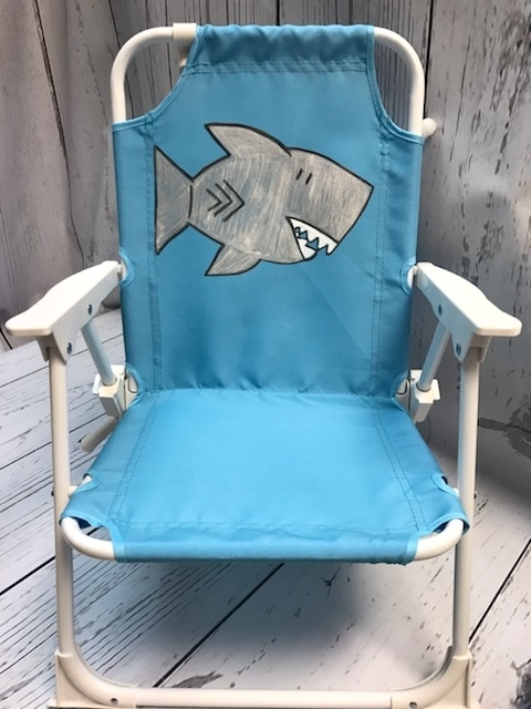 Personalized with the toddlers name and a design of your choice this is. For children folded personalized beach chair. With padded straps so the small beach/backpacker can carry their own seat and molded arms and locking seat to prevent accidents.