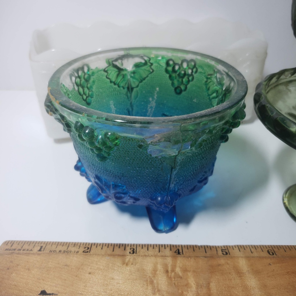 Vintage marigold carnival glass fenton candy dish. Fenton blue 3 toe dish vintage signed script and sticker. 5 out of 5 stars. 8 o s p t h p f o n s 9 c o r e d x w k. Vintage fenton blue milk glass lidded candy dish on pedestal. Vintage avon milk glass candy dish, candy dish by avon , wedding candy dish, pressed glass, flowers 6 1/4 tall, candy dish with lid, retro. Lace edge pattern anchor hocking milk glass compote or fruit stand, about 11 across the full width of the plate (including the lace.