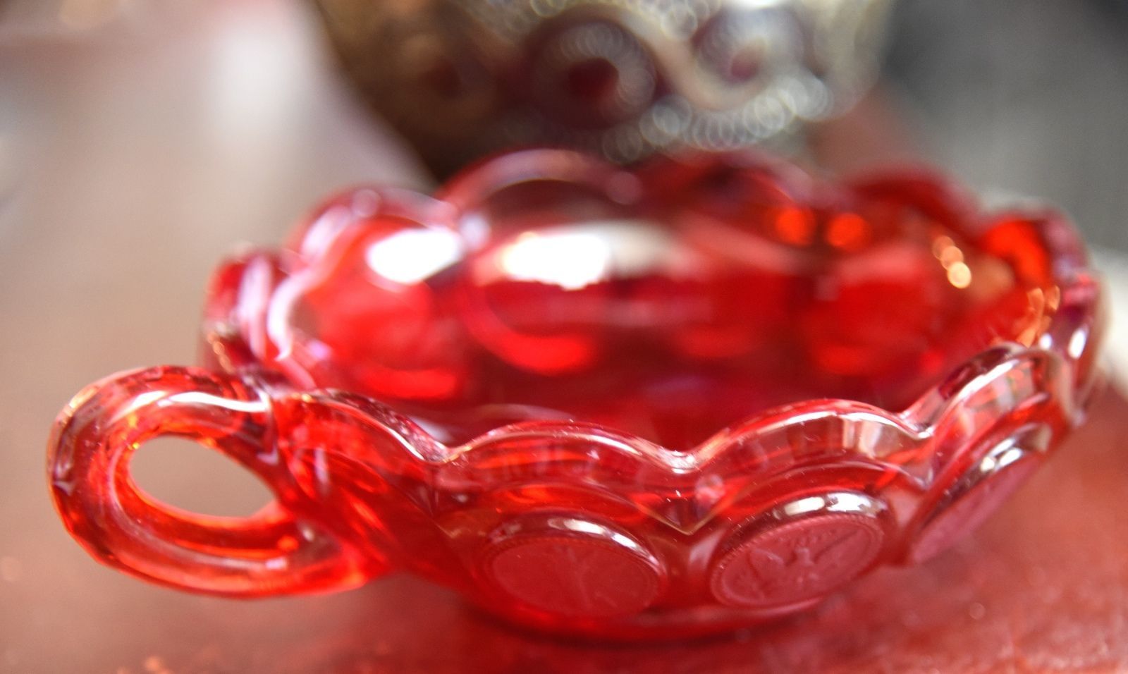 Viking ruby red amber trim art glass 4 1/2 pedestal compote candy dish. Comsaf glass candy dish with lid decorative candy bowl, crystal covered candy jar for home office desk, set of 2 (diameter:4.5 inch) 0. Friday april 16th with the first lot starting to close at 5:32 pm mst.