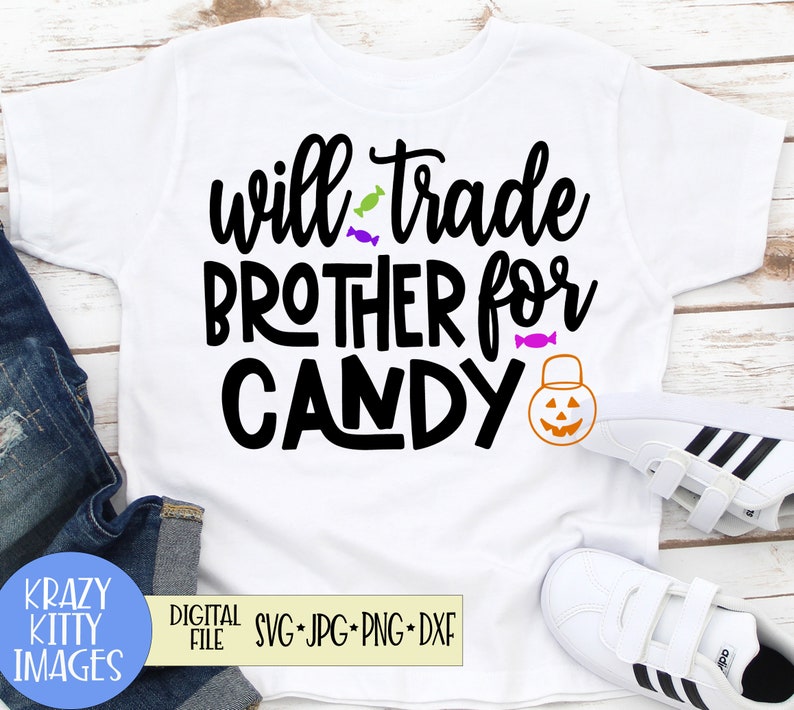 Will trade brother for candy $ 0.00. Will trade brother for candy svg, halloween svg, halloween sister s. Will trade for candy sublimation design.